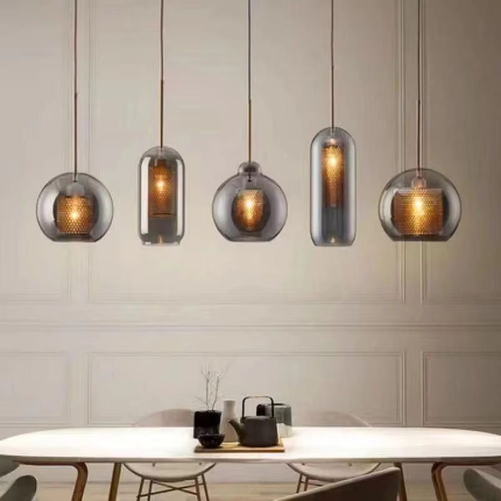 This chandelier adopts a light luxury minimalist style design, with multi-size transparent glass balls as the outer cover, paired with golden perforated metal lamp cores, presenting a sense of hierarchy through staggered hanging; it is equipped with built-in warm light sources, and the light presents a soft and high-end texture through the gold mesh and glass, suitable for installation in dining rooms, foyers, living rooms and other spaces. It is both a practical lighting tool and a decorative core that enhances the exquisiteness of the space, effectively strengthening the warm light luxury atmosphere of the scene.