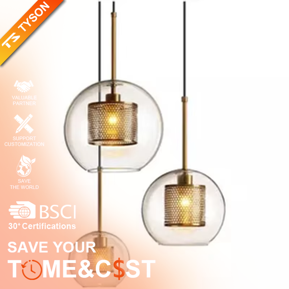 TYSON Hot Popular Indoor Decoration Pendant Light Glass Gold Three Headed Modern Pendant Light Hanging Lamp