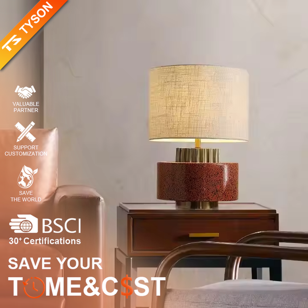 TYSON Vintage Style Cement Ornaments Table Lamps Bedside Decoration Small Light Lamp Round Desk Table Lamp