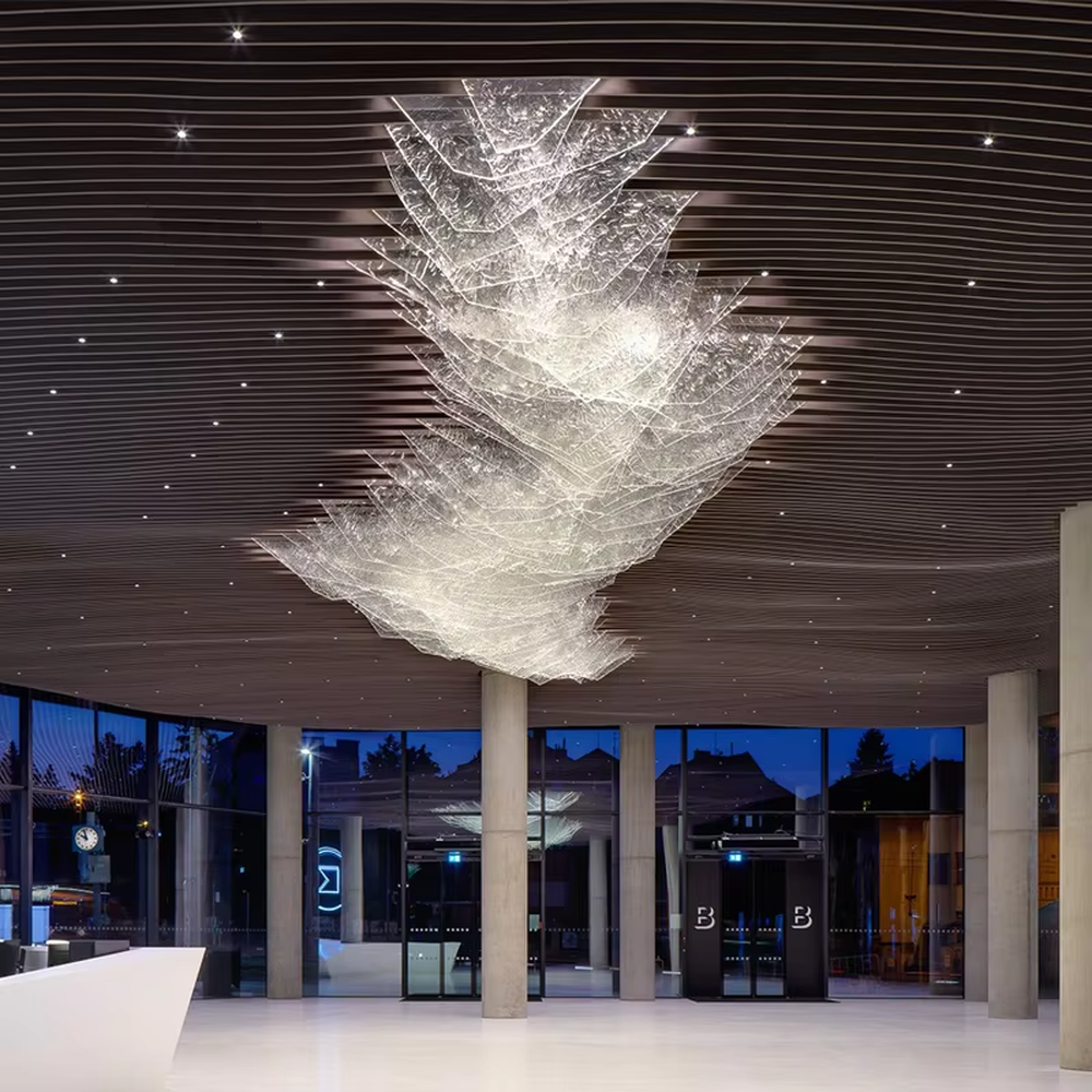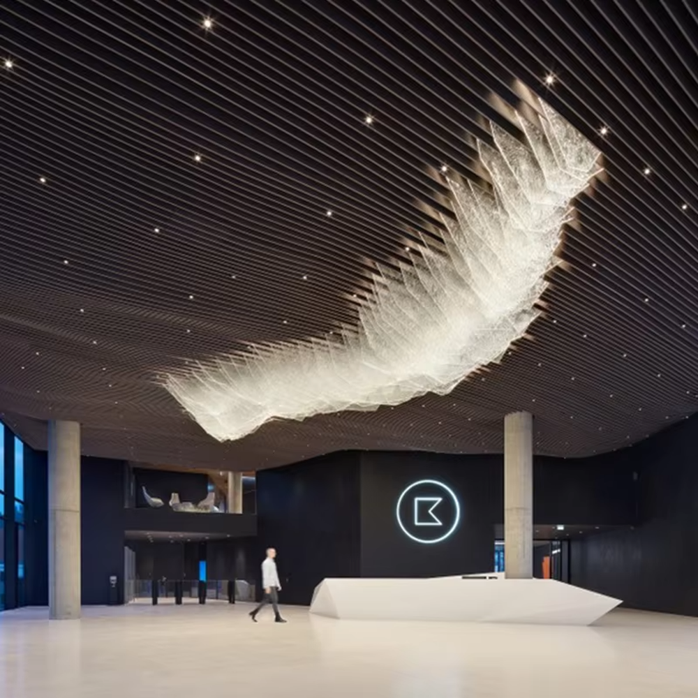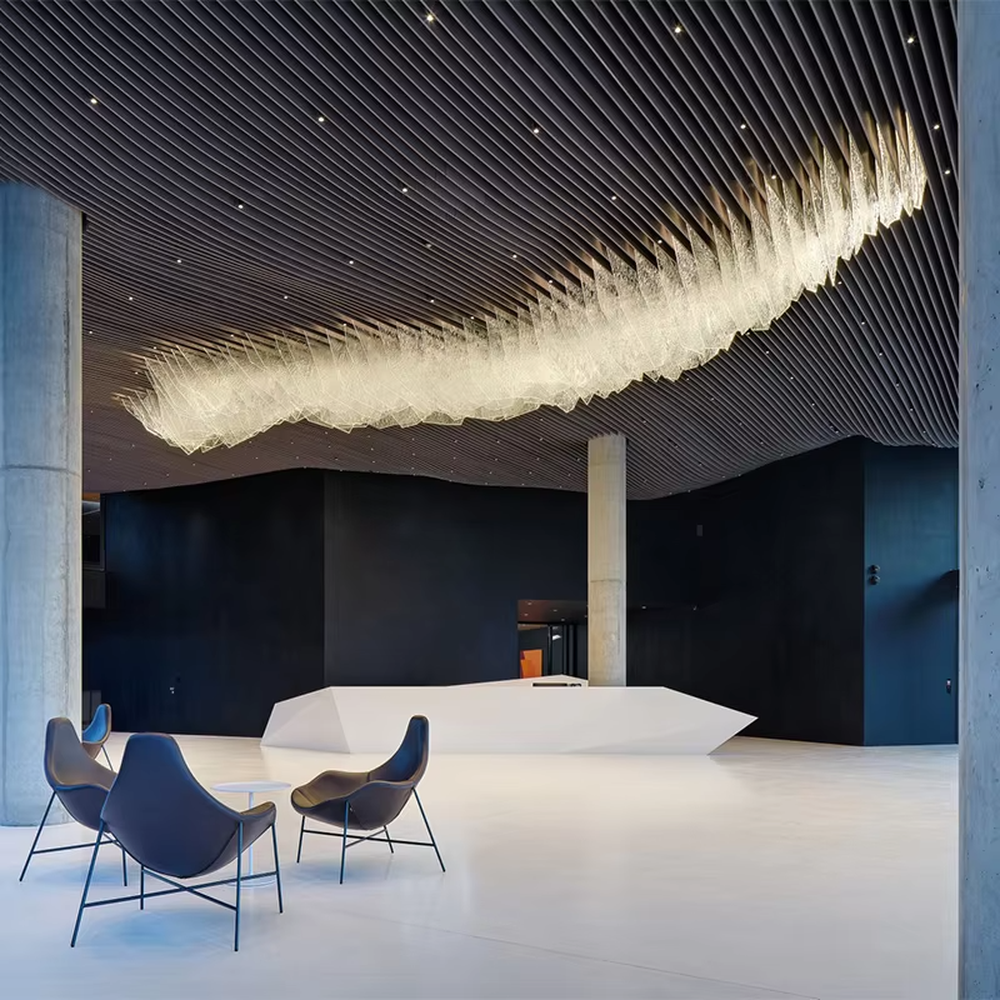 - Hotel lobby/corporate exhibition hall:As the core visual installation of the space, the flowing wave shape enhances the depth and artistic atmosphere of high-ceiling spaces, improving the venue’s style and guest experience, adapting to the avant-garde tone of high-end hotels and corporate headquarters.
